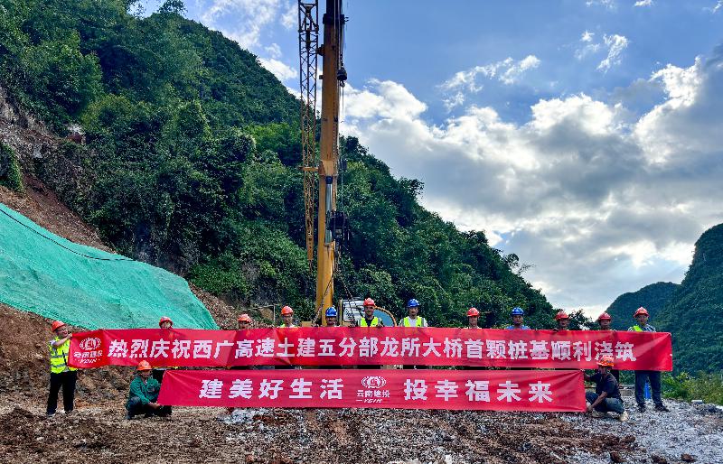 西廣高速公路項目土建五分部龍所大橋首顆樁基順利完成澆筑